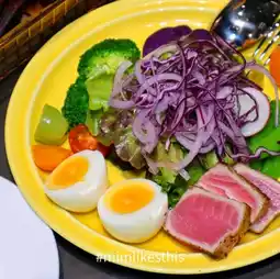 -Nicoise Salad Seared tuna on the outside is fragrant, fresh and crispy salad, served with boiled eggs