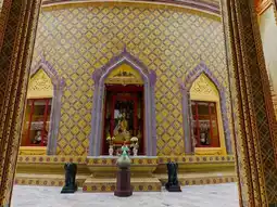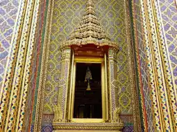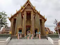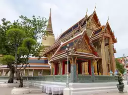 Wat Ratchabophit Sathit Maha Simaram Ratchaworawihan, or Wat Ratchabophit for short, is the temple of King Rama V and VII. It is located on Fueang Nakhon Road. It was built during the reign of King Chulalongkorn, Rama V. Its architecture is a mix of Thai and European architecture. The exterior is Thai architecture, while the interior of the church is decorated in Western style. The highlights of Wat Ratchabophit are the ordination hall, the chapel, the pagoda, and the glass gallery, which have beautiful Thai lacquered and mother-of-pearl patterns. Some parts are decorated with Benjarong glazed tiles. The pagoda is decorated with bell-shaped glazed tiles. It is the last principal pagoda built according to traditional designs that have been practiced since ancient times.