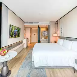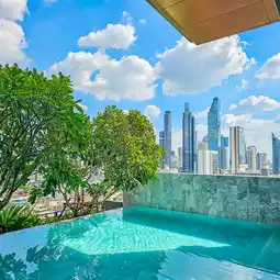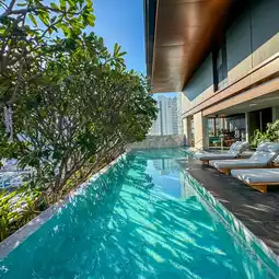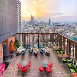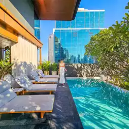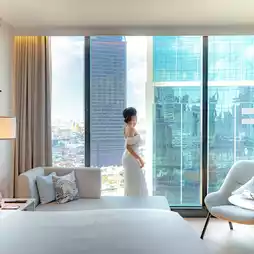 A newly opened hotel in the Dusit Group in the heart of the city with a prime location near 𝐌𝐑𝐓 Samyan, decorated in a modern contemporary style, maintaining a luxurious and classy feel with new rooms in a good mood, white and wood tones, soft on the eyes, with large glass windows, overlooking the city view, with complete facilities, including a 𝐒𝐡𝐮𝐭𝐭𝐥𝐞 𝐁𝐮𝐬 that provides services all day, a swimming pool, a fitness center, a restaurant, a rooftop cafe, all in one place, extremely convenient