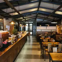 🐰A loft-style cafe in brown tones, with plenty of seating space, and a charging station and meeting room area. It's perfect for working, but the lighting may be a bit dim. The menu has both savory and sweet dishes.