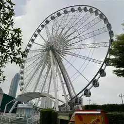There is a cafe selling durian milkshakes in the venue. The environment is very comfortable and you can enjoy the scenery of the amusement facilities from the window. When you walk to the beach, you will see a beautiful sailboat with many people taking pictures.