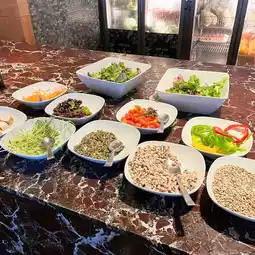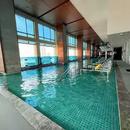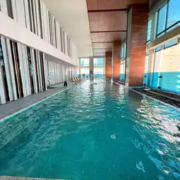 The central area has an indoor pool, you can swim all day without fear of the sun
