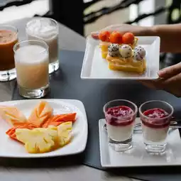🍰 In addition, there are fruits, cakes, desserts and various drinks included. No additional charge And the must-try menu is the Thai tea slurpee, fragrant Thai tea with a well-rounded taste, and the lychee slurpee. Which has lychee pulp mixed in and soft-serve ice cream that is very delicious. You can eat as much as you want like this. Walk around 10 times.