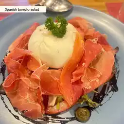 The next menu is Spanish burrata Salad. The cheese is juicy. When you bite it, it is refreshing. The tomatoes and salad are fragrant with light grilling. Eating it makes your heart flutter.