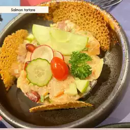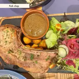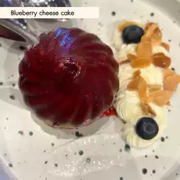 Next is Salmon tartare. This dish has a perfect taste. You won’t be disappointed. Another dish I would like to recommend for the main course is Pork chop. Hey, it’s so good. It’s juicy. Even better when dipped in the sauce provided and with the salad on the plate. It’s the ultimate in satisfaction. …and here, besides the delicious food, their desserts are also famous. We ordered the Blueberry Cheesecake, oh my, it wasn’t too sweet. The blueberry cake was soft on top and crispy on the bottom. You have to scoop up the bottom layer and eat it with the whipped cream provided. It’s the ultimate comfort on a tiring day. ..