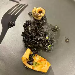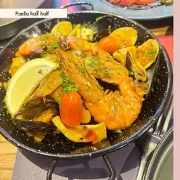 This restaurant is considered a good meeting place with friends after work. That day, my friends and I ordered a full table. The first menu is Spanish rice, the menu name is Paella half half, which is Seafood with two-color rice. The first half is black rice. I must say that eating it makes your mouth black, but it is very delicious. The other half is orange rice. The taste is spicy and delicious. I recommend it.