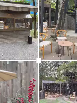 Features: wooden design cafe, self-service
