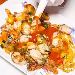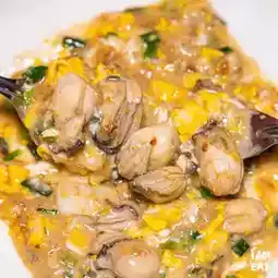 ✨I ordered the oyster omelette with mixed oysters, mussels, and oysters. The oysters were very plump, stir-fried until soft, topped with a gooey sauce.
