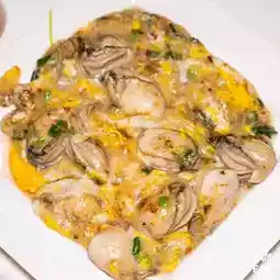 🦪Oyster omelette, plump oysters stir-fried with eggs that were not overcooked, still very soft and juicy. Sprinkled with fragrant pepper.