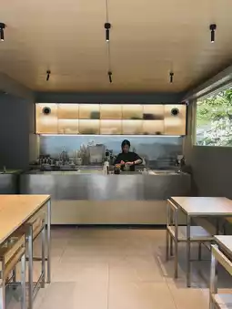 I tried matcha for the first time at Ari and saw the newly renovated branch. It's very Japanese, with stainless steel and light-colored wood décor, emphasizing the simplicity of Japanese style. The drinks and desserts are all matcha-focused. This time, I tried the Light Brew Yame (฿120), a matcha-free drink with a delicious, non-bitter taste and a rich matcha aroma. I also tried the Monaka (฿85), a crispy Japanese rice cake filled with red beans and a sweet and sour grape flavor. I'm absolutely thrilled!