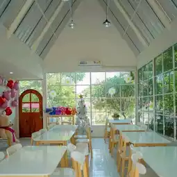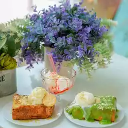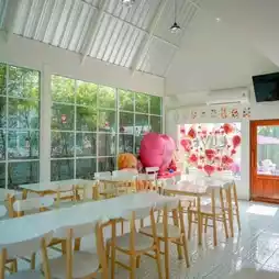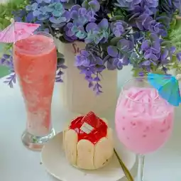 The Bloom Garden Cafe & Dessert, a cafe in Bang Bon, Rama 2 area. The shop is now decorated very cutely to welcome the upcoming 🌹Valentine's Day festival. Stop by to take pictures and eat desserts. There is also a chill-out corner by the water, an air-conditioned area, and a beautiful photo corner. There are many types of food, drinks, and bakery to choose from. I must say that the desserts in the shop are very delicious. Cafe lovers must not miss it.