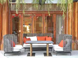 It's located on the Chao Phraya Riverside, where you can enjoy the river view, so it's great for a walk at night. There are many local restaurants and 7-Eleven convenience stores around the hotel, so it's convenient.