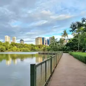 I like walking here because it is a public park in the style of a natural forest garden. There are many large trees, so there are various kinds of birds living and singing, including crows, hornbills, kingfishers, bald-headed eagles, and pigeons. In addition, there are squirrels running around everywhere. Along the water's edge, you can see iguanas basking in the sun on coconut trees, enjoying taking photos.