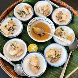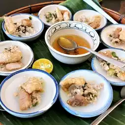 Served in 8 small, flat cups, filled with steamed rice paper that reminds us of Juy Guo, but this Banh Bao is much softer. When you put it in your mouth, it almost slides down your throat, like you've forgotten to swallow it. It's topped with crispy pork rinds, minced pork, and spring onions. It's topped with a dipping sauce that smells of fish sauce but isn't too salty. It's thick, slightly sweet, and has lime to squeeze in instead of lime, giving it a gentle, sour taste and a very pleasant aroma. For us, this menu is the most delightful.
