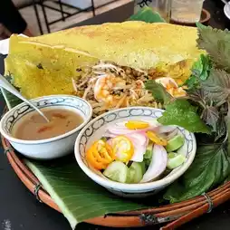 The Vietnamese pancakes that we're familiar with, but are filled with bean sprouts, minced pork, and plump shrimp. The dipping sauce or pickled vegetables is thick and well-rounded. Served with cucumber. But the taste is more gentle than the Thai style that uses vinegar and sugar.