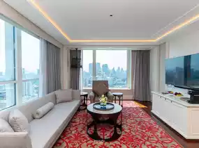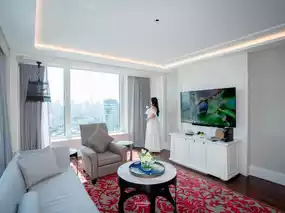 Today, the two of us came to relax at Sofitel Bangkok Sukhumvit. It has been renovated but still maintains the beautiful luxury style according to the standards of a 5-star hotel. The room we stayed in today was the Prestige Suite. The room is quite spacious, 85 square meters, with a clear separation between the living room and the bedroom. The design combines luxurious French style with the gracefulness of Thai patterns. It is very beautiful.
