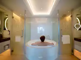 What cannot be left unmentioned is the amenities in the room. They have a smart tablet that can adjust the air conditioning, turn on/off the lights in the room, change the TV channel, order food from room service, or check out the hotel's promotions. There are also various modern and complete amenities. Another thing I like is the bath products they use Balmain. The scent is so noble and fragrant.