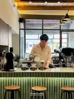 #Songkran2024 Destinations ☕️ La Cabra Coffee Roaster, a Danish coffee shop, has opened a small storefront in the heart of Bangkok, in the Talad Noi-Charoen Krung area. The shop's façade features slightly worn loft-style walls, decorated with photo panels and plants, and large wooden chairs with triangular cushions. It's reminiscent of walking into your grandmother's old home.