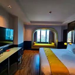 GRAPH Hotels is a 4-star hotel + lifestyle located on Ratchadaphisek Road, one of the shopping, business, and entertainment districts of Bangkok. The location is good, with parking, convenient transportation, and close to the Huai Khwang MRT subway, making it easier to travel to the heart of Bangkok.