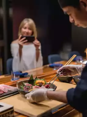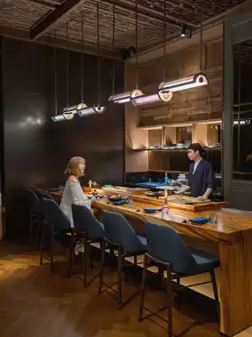 Dinner is eaten at A luxurious dinner at Maison Misuki, a restaurant that perfectly combines Asian and French styles. There is a sushi bar similar to an omakase restaurant, and a glass wall that adds a French touch. So awesome!