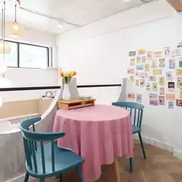 The 2nd floor is the dining area. There is a photo booth with cute props for taking pictures. 🪑