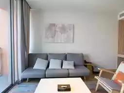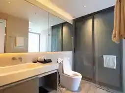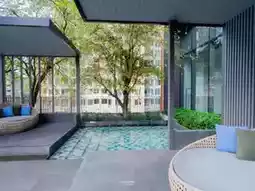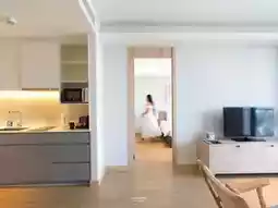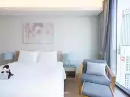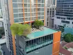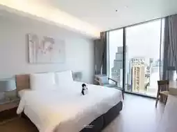 This is a service apartment hotel. Designed to look simple and modern, the rooms come with complete facilities, including a coffee maker, electric stove, microwave, washing machine. The common area also has a kids club, fitness center, sauna, saltwater swimming pool with panoramic city views, and a Resident Lounge, which is a chat room, relaxing, with free snacks, tea, and coffee. As for the Sky Lounge located on the 33rd floor, the hotel will only allow guests who have booked a long-term stay to use it.