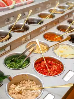 In the dipping sauce bar area, there are signs with various recipes for you to cook according to. Or if you want to trust your own intuition, Cook it however you want, just like us, lol. There are fruits, desserts, and small snacks to eat here. You can take as many as you want. It's included in the 50฿ price.