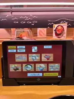 Today we had the opportunity to eat sushi at the Villa Ari branch. At first, we thought the queue might be long, but we were lucky that the wait was not as long as we thought. When we got our turn, we were taken to a table and informed about how to order food and drinks. We could order everything from the screen at the table. It was very convenient! The ingredients were fresh and clean. Most importantly, the prices were not expensive. They started at 40/60/80/120 baht per plate. We could tell by the color of the plate. Personally, I was very impressed with this place because everything was delicious. All the food was served hot, which made it even more delicious. The staff provided good service.