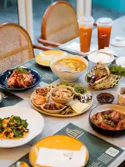 #Songkran2024Travel 🍚 Kamin, a southern restaurant with mother's taste, combining the decoration of the shop in a cafe style, making it more accessible to the new generation. For this branch, we came to Ari, located in the same area as Flerwows, a flower and smoothie shop with a lot of customers. So cute! 🌸💐