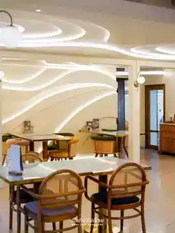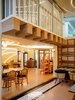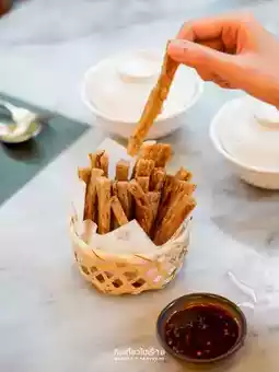 As for Kamin Camin Cuisine & Cafe, Ari branch, it is a glass room with air conditioning, cool and comfortable. Decorated in a homey style, furniture, both tables and chairs in brown and wooden tones. Outside, there are green trees that make it look shady and comfortable to the eyes.