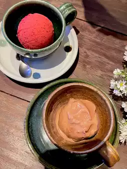 A hidden cafe in Pak Khlong Talat that doesn't only have good drinks and food. We would like to highly recommend the shop's homemade ice cream. There are many flavors to choose from. Some flavors we have never seen anywhere else before. We ordered chocolate and mixed berry flavors to try. The ice cream was smooth and rich. Overall, it was very delicious. The atmosphere of the shop is also very good. ✨🌸