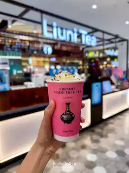 The shop is called Liuni Tea - Liu Ni, which just opened its first branch in Thailand. The shop is a small kiosk, but inside there are about 3-4 tables. The tea menu has milk tea, clear tea, fruit tea, and fruit juice. But for tea lovers like us, we chose to order tea from the menu, which we must say is better than expected. For example, the jasmine snow milk tea is fragrant with tea, jasmine, and milk. Everything is fragrant. Another recommended glass is the Tibetan barley milk tea. This glass has barley toppings that are extremely chewy and enjoyable. This price starts at about 60 baht per glass. The glass has a beautiful pattern, a printed paper cup. It makes you think you are drinking milk tea abroad.🥰