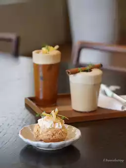 The menu includes drinks like the Sense of Smooth (THB160), a delicious cinnamon milk coffee and a perfect summer drink, Pina Colada (THB180) which’s coffee-based. The selection of sweets such as Choux Yuzu (THB145) was amazing too!
