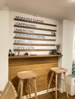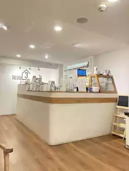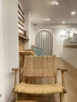next to the MRT and a famous shopping mall, Seoul 3 Hotel Slow Bar Cafe (Seoul 3 Hotel). The price is less than a thousand.