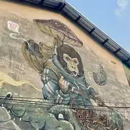 Today is a Songkran holiday (April 16, 2024). I felt like going out to do something, so I found a painting place and a very chic place, Old Huata Khe Market. So I drove my private car to Soi Lat Krabang 17 (don't go up the bridge, don't say I didn't warn you). After entering the alley, drive to the end of the alley. You will see a fork in the road. Turn right. You will see a very large parking lot. Parking fee is 10 baht (can park for 3 hours). After that, let's paint.