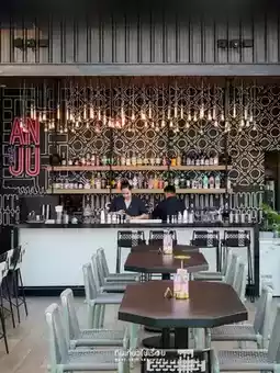 #Songkran2024Travel "ANJU" The first Korean-style rooftop bar in Bangkok on the 31st floor of a centrally located hotel in the Lang Suan area, Sindhorn Midtown. Take the elevator from the lobby to the 30th floor, then you will find a spiral staircase leading up to the shop. It looks a bit mysterious. Or for those who are too lazy to walk up the stairs, there is an elevator service. Just here already has a beautiful view, but when you go up to the 31st floor, the view is amazing, almost 360 degrees.