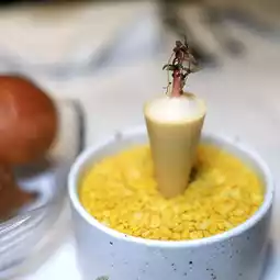 Iberico pork cheek stewed, served with coffee foam gnocchi and thinly sliced fried taro. The stewed pork cheek is soft and melts in your mouth, perfect with the fragrant coffee foam.