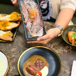 รอบนี้คือชอบมาก กุ้งแม่น้ำเผาตัวใหญ่ มีทั้งเห็ดเป่าฮื้อ เห็ดทรัฟเฟิล ของโปรดทั้งนั้น 😍 และยังมีเมนูอื่นๆ อีกกว่า 100 รายการ ทั้งเมนูใหม่และเมนูไฮไลท์ ถึง 4 สัญชาติ ตะวันตก ญี่ปุ่น ไทย และจีน ปรุงใหม่แบบจานต่อจาน สไตล์ Fine Dining Buffet
