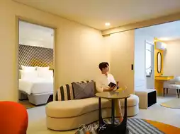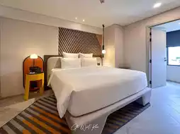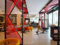 This review, I will invite everyone to change their sleeping place and try staying at the first TRIBE hotel in Thailand. This hotel is a lifestyle style, so the interior decoration looks chic, with bold lines and colors. There are many cool photo spots. Even the yellow corridor in front of the room reminds us of Wes Anderson's movies. The hotel is not only located in a modern area in the city center, near the BTS, but also has a cafe where people outside can come to sit and work all day long.