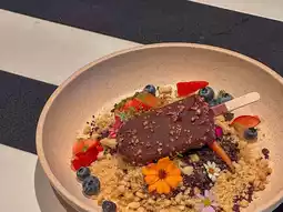 The main restaurant here is ‘TRIBE Table’ which is decorated very chicly. It is next to the swimming pool. There is a chic bar in the middle. Each menu that you choose is beautifully decorated. There are both Thai and international dishes to choose from. The dessert ideas are also very good. For example, I had Apple Crumble which was topped with an apple crumble like soil and decorated with beautiful flowers. In the morning, breakfast is served here. We can order a main course for each person. As for salads, bakery, and cold cuts, there is a line for you to help yourself. I ordered Japanese-style fried rice with beef for breakfast. It was very good.