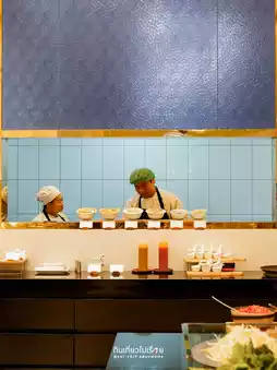 The restaurant is located on the ground floor of the Grand Centre Point Hotel, Sukhumvit 55 (Thonglor Soi). When you walk in, it's spacious. In front is a cafe that's open all day, but at 5 p.m., the buffet side opens, so you can just walk in and sit down.
