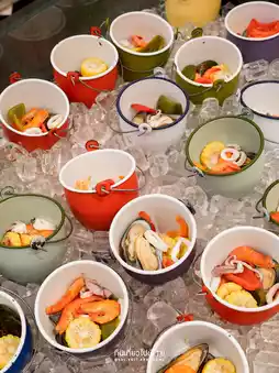 #Songkran2024 Travel destinations Late-night rice porridge buffet that doesn't just have rice porridge Bring your family here, it's the answer because the menu is accessible to all ages. BlueSpice is special because you can sit and eat as long as you want, no time limit, but it's recommended to make a reservation in advance because it's quite crowded.