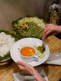 The rice dishes are equally good, including salmon fried rice, omelet, pork leg, stir-fried cockles with chili, delicious beef soup, coconut milk noodles, and spicy salads. You can also choose your own ingredients and bring them to the chef to cook as a spicy salad. Oh! There are also shrimp and seafood buckets. 🦐🦑