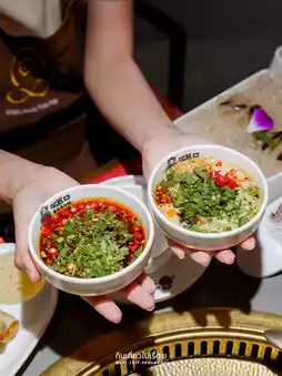 🥘 Once we booked a seat, we started by choosing the soup base. The average price is 360 baht, with 3-4 flavors. We chose 3 flavors: Mala beef soup, pork bone soup, and ginseng soup, which is a new flavor. At first, we were afraid that it would smell like Chinese herbs, but it turned out to be delicious and enjoyable to sip!