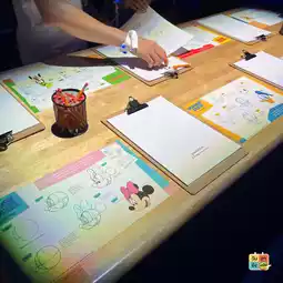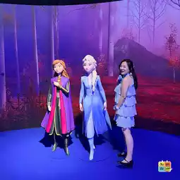 💙The first zone inside has real-size Elsa and Anna standing to welcome you with a scream 😍 and it is a zone showing the work of animators, including work tables, models that were created to be characters, scenes inspired from all over the world, drawings from Cinderella when the fairy godmother made her dress, and there is also a simple way to practice drawing different characters. When you're done drawing, you can take it home. I recommend coming a bit before the time you bought it because you will have a lot of time in this zone.
