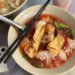 Rating: A street shop near BTS E6 Thong Lo Station, when staying at jasmine59. I found delicious boat noodles while strolling. At first, I only saw many people passing by. The business hours are from 7 am to 3 pm. It feels like a local brunch shop, but later I found out that it is a boat noodle shop, which is simply a Thai noodle stall. Since there is no Chinese menu, you can scan the code on the table and there is an electronic menu, so you can only judge by pictures and translation. The clerk will simply introduce the dishes in English. With the help of the pictures, I chose the dry mixed noodles in the middle. The translation says that Hakka dry mixed noodles are 60 baht and a plate of boiled fish meat is 90 baht. I chose egg noodles for noodles. Later I realized that ordering here is to choose the flavor and then the noodle. There are a total of 9 flavors and 7 noodles to choose from. Egg noodles are usually the first choice for dry noodles. The most common and ordinary. You can taste the most basic flavor of the store.