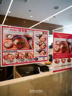 #Songkran2024Travel Destinations Enishi Raman The shop is located in the One City Center building, in front of the entrance. If you walk from the BTS, you may see the shop. Or if you park your car at the building, you have to walk back to the front. The shop is near the Arabica coffee shop.