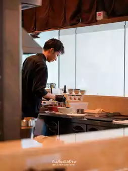 The shop looks like a 1-seat speed bar with a long counter bar. There is a chef preparing ingredients and cooking in front of you. It seems to be a gimmick of many shops that have opened in Thailand for this era. But it's good. It looks like a way for customers to get to know the chef in another way.