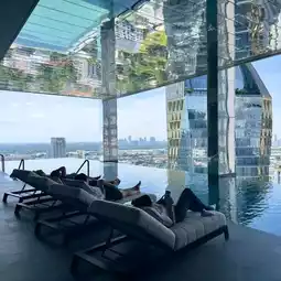 You must go to the Top floor lounge, the cocktails are very good and very professional. The swimming pool is another selling point, with a sky-high mirror and an infinity pool, so cool!