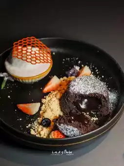 • Chocolate Lava Cake served with Coconut Ice-Cream